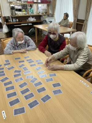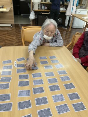テーブルいっぱいに並べられたトランプを前に、「これはさっき見た気がする!」「あれ?どこだったかな?」と、皆さま真剣な表情で記憶をたどりながらカードをめくられていました。なかなか思うように揃わず、「難しいね~」と笑い合う場面もありつつ、会場は終始和やかな雰囲気に包まれていました。