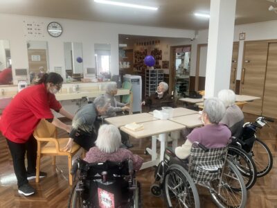 おおがき苑では、レクリエーションの一環として風船バレーを行いました🎈